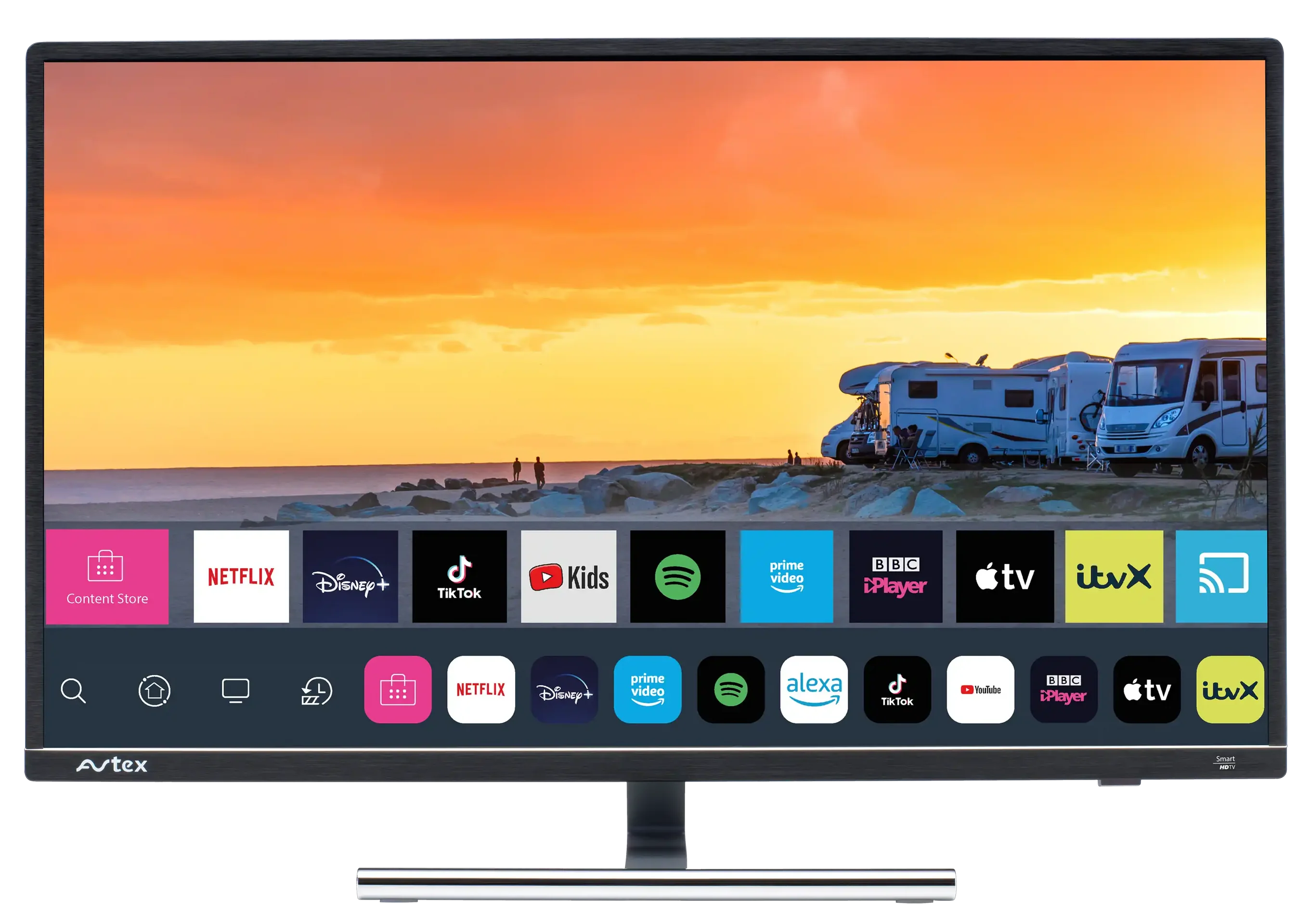 The Avtex W320TS is a fully loaded, battery/mains 32” Smart TV1 designed with the caravan and motorhome user in mind. This feature-packed TV provides top-quality viewing whether using your vehicle battery, leisure battery or caravan park mains hookup.