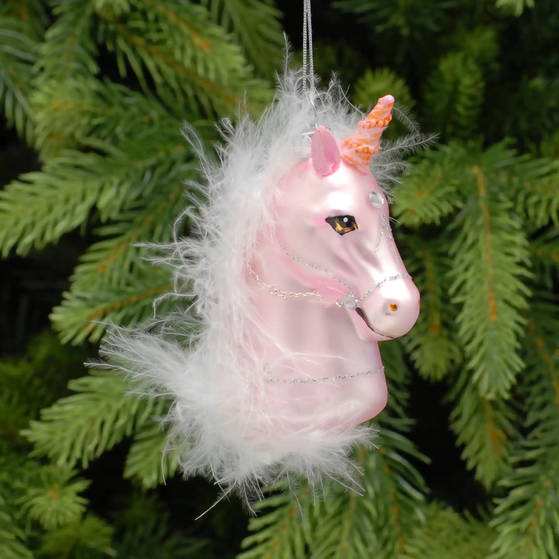 Perfect for unicorn lovers and those who cherish a bit of fantasy in their festive decor, this glass ornament is sure to become a cherished part of your holiday tradition. Whether you're decorating your own tree or gifting it to a loved one, this unicorn decoration will bring joy and wonder to any Christmas setting.