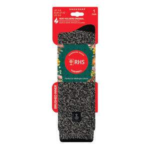 Enhance your comfort and warmth while working in the garden or preparing for a festival with Heat Holders Women's Wellington Boot Socks in Black Twist. These socks feature an extended leg design, providing the same level of trusted warmth and comfort as the renowned Original Heat Holders.
