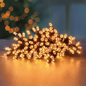 The Premier Vintage Gold 200 LED Lights are battery operated for convenient, wire-free use both indoors and outdoors. Featuring 200 warm vintage gold LEDs with multiple light effects and a built-in timer, these lights enhance any décor with vibrant, flexible illumination. Ideal for adding a charming ambiance without the hassle of cords.