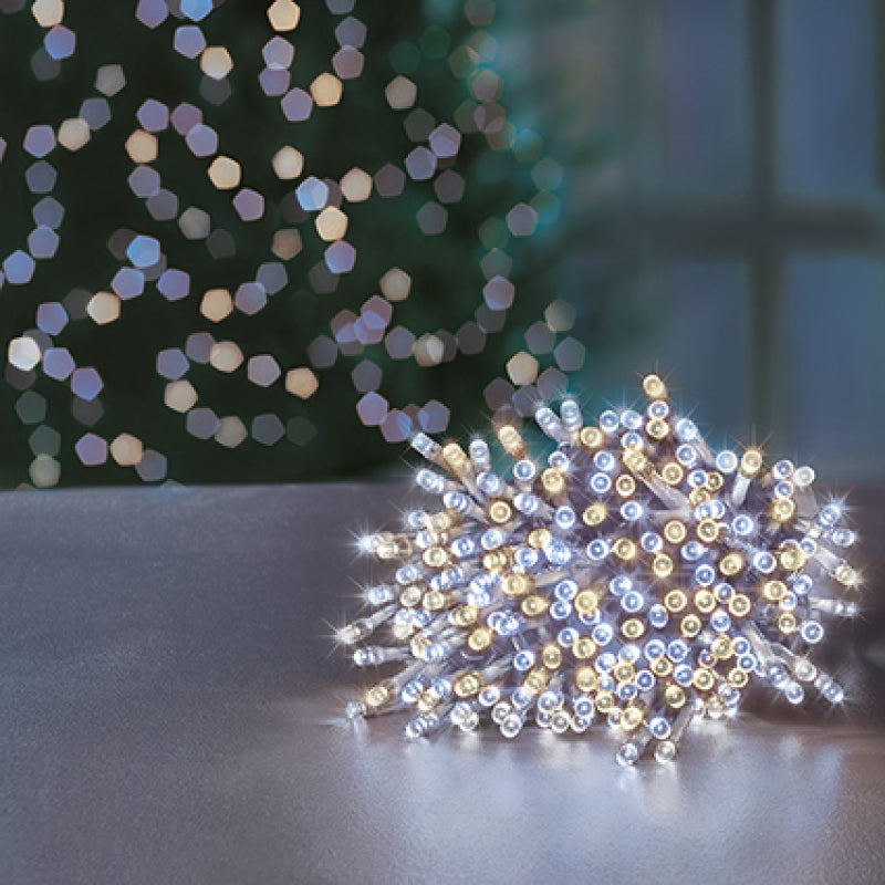 Brighten your indoor and outdoor displays with the Premier 50 White & Warm White LED Lights. Battery-operated for convenient placement without wires, these multi-action lights feature a clear cable and a timer function to simplify your lighting setup. Combining classic white and warm white LEDs, they create a welcoming atmosphere while offering versatile, energy-efficient illumination.