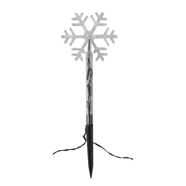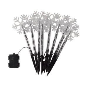 Bring festive charm to your home with these Snow Décor Stake Lights. Featuring attractive snowflake heads and 24 vibrant multi-coloured LEDs, these battery-powered stakes brighten paths, lawns, and borders both indoors and outdoors. With an auto timer that runs for 6 hours and rests for 18, they provide hassle-free holiday lighting. Each stake stands 35 cm tall and includes a 50 cm lead cable. Perfect for adding a cheerful glow to your Christmas decorations, this set of 8 requires 3 AA batteries each (not included).